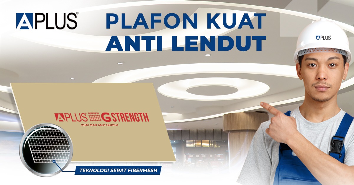 Pada umumnya, di Indonesia menggunakan jarak rangka plafon 60 cm x 120 cm untuk papan gypsum 9 mm. Hal ini membawa efek lendut di permukaannya. Papan Aplus G-Strength 9 mm memiliki tingkat fleksibilitas tinggi dalam desain dibandingkan papan gypsum standard, di mana lendutan Aplus G-strength 9 mm sama dengan lendutan papan gypsum standard 12 mm. Hal ini menjadikan Aplus G-Strength sebagai papan gypsum anti lendut pertama dan satu-satunya di Indonesia.